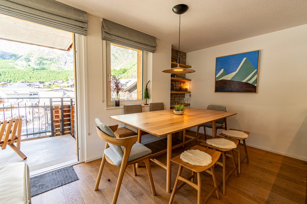 With three luxurious bedrooms, sleeping 8 guests. 3 bathrooms, and a fully equipped kitchen, this apartment is designed for comfort and convenience. Enjoy the cozy ambiance of the living room by the fireplace or step out to explore the scenic wonders of Saas-Fee.