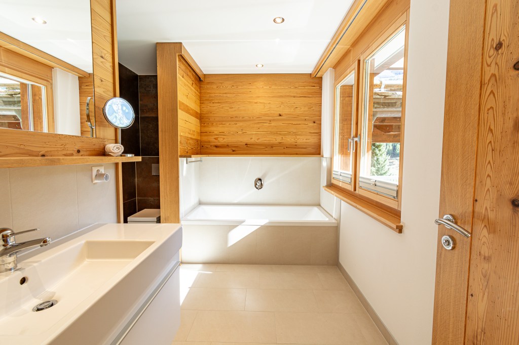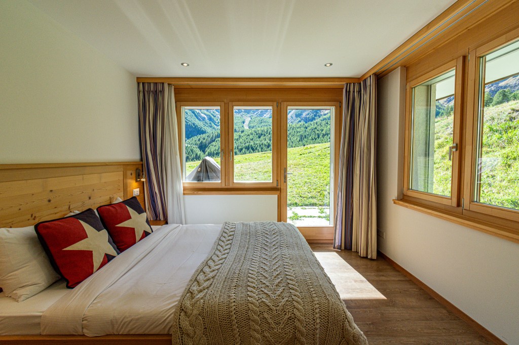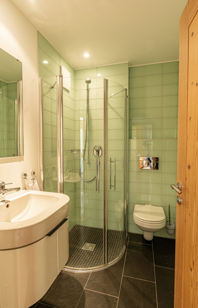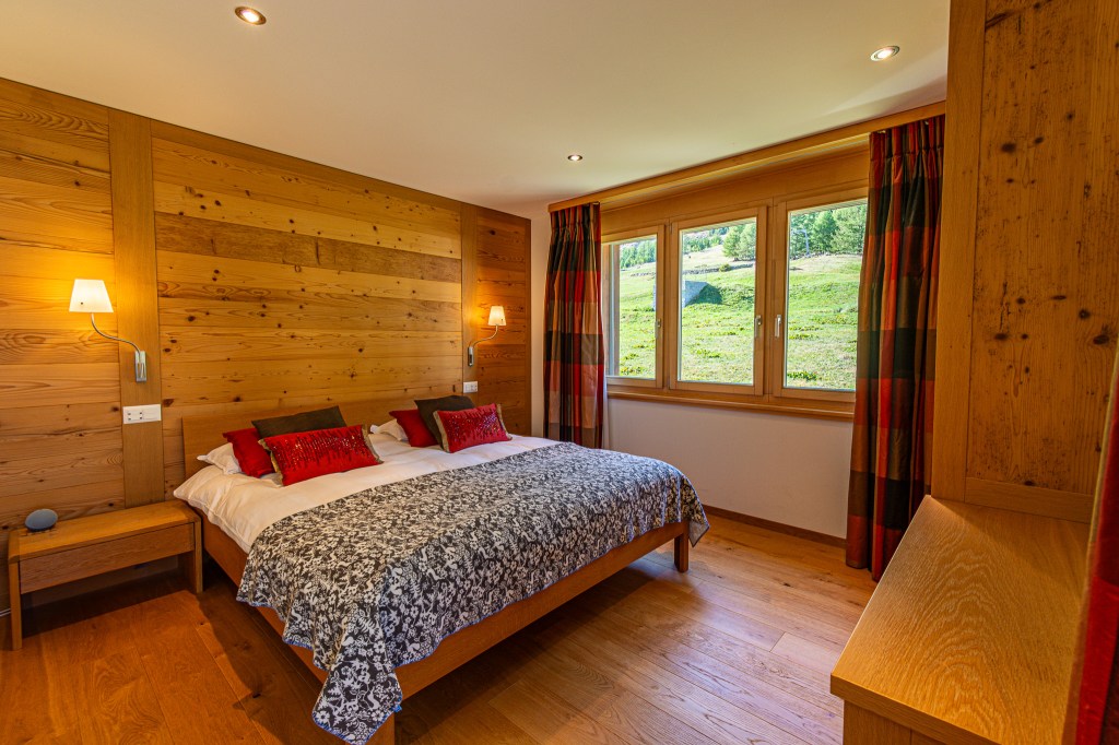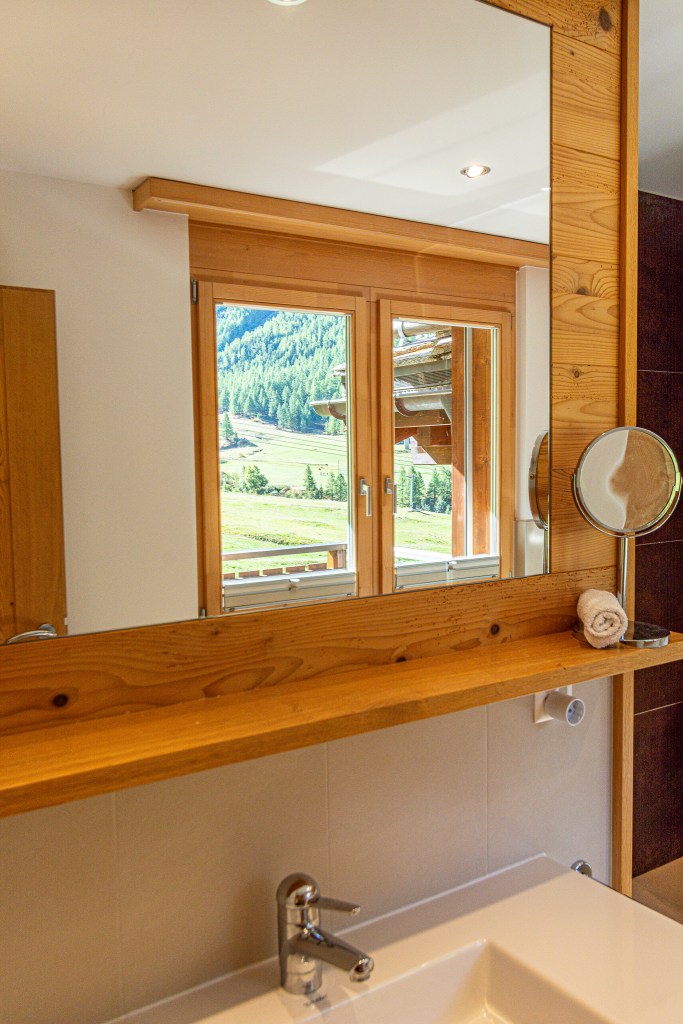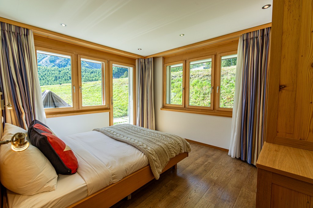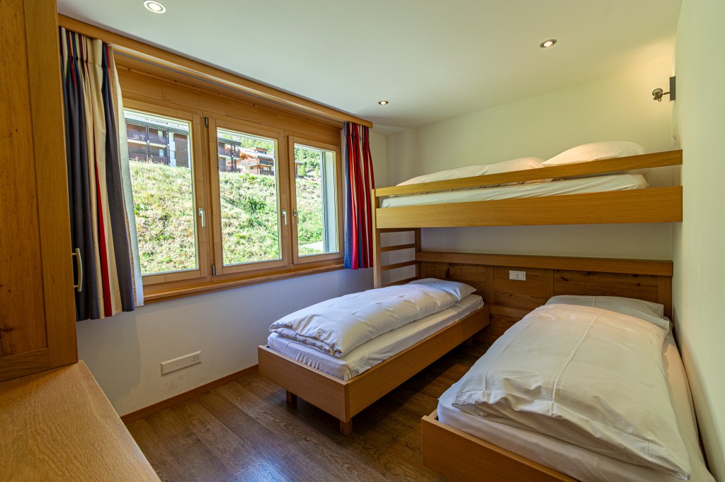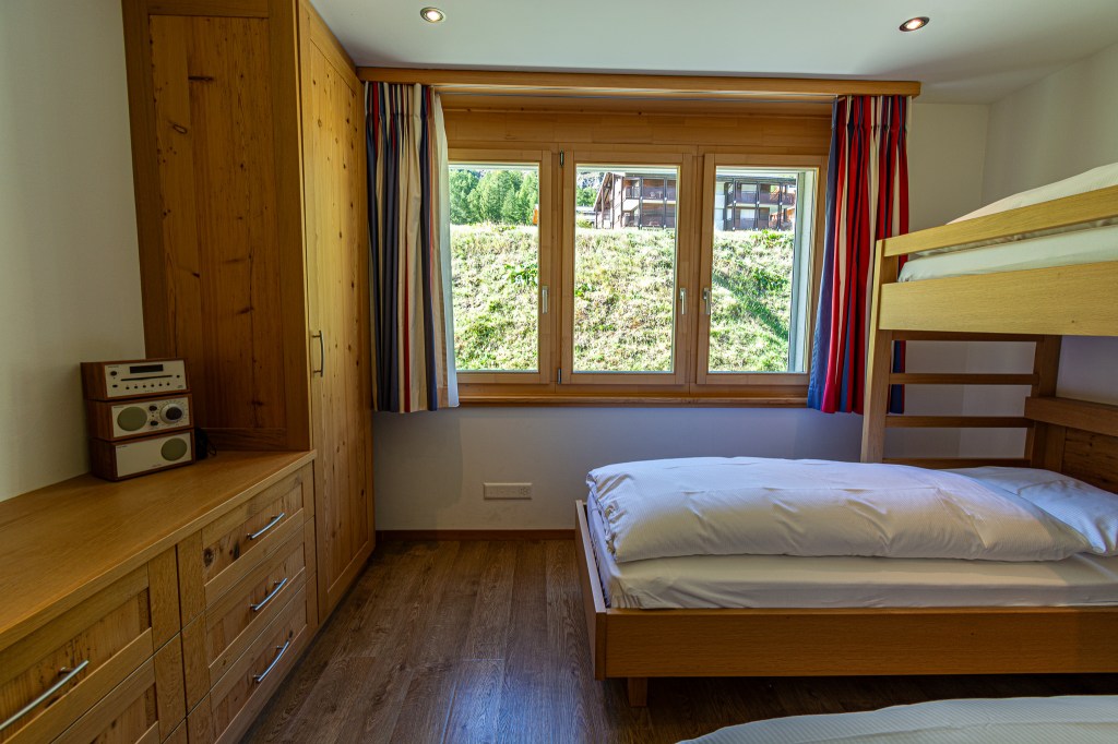 On the top floor you’ll find a spacious open plan living. The fully equipped kitchen blends functionality with elegance and invites you to prepare a lovely family feast! Featuring a coffee machine, 2 ovens, a blender, toaster and ofcourse don’t forget the traditional Swiss fondue and raclette sets for those perfect Swiss nights.