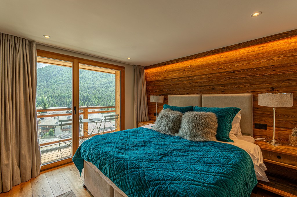 Set above the village in a central privileged position, Chalet Sonnhalde is a standalone, luxury chalet sleeping up to 10 guests, over 4 bedrooms and 4 floors. With two Tv lounges, a private sauna and extra office space, designed for guests who value space, privacy and impeccable finishes, it pairs contemporary alpine interiors with wraparound balconies that keep the mountains in view from every level.