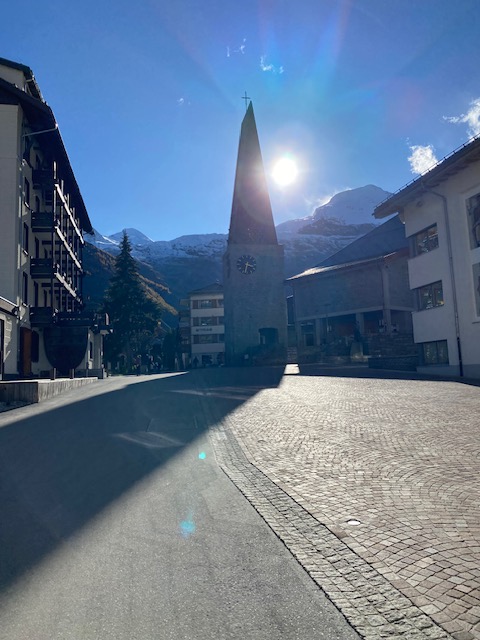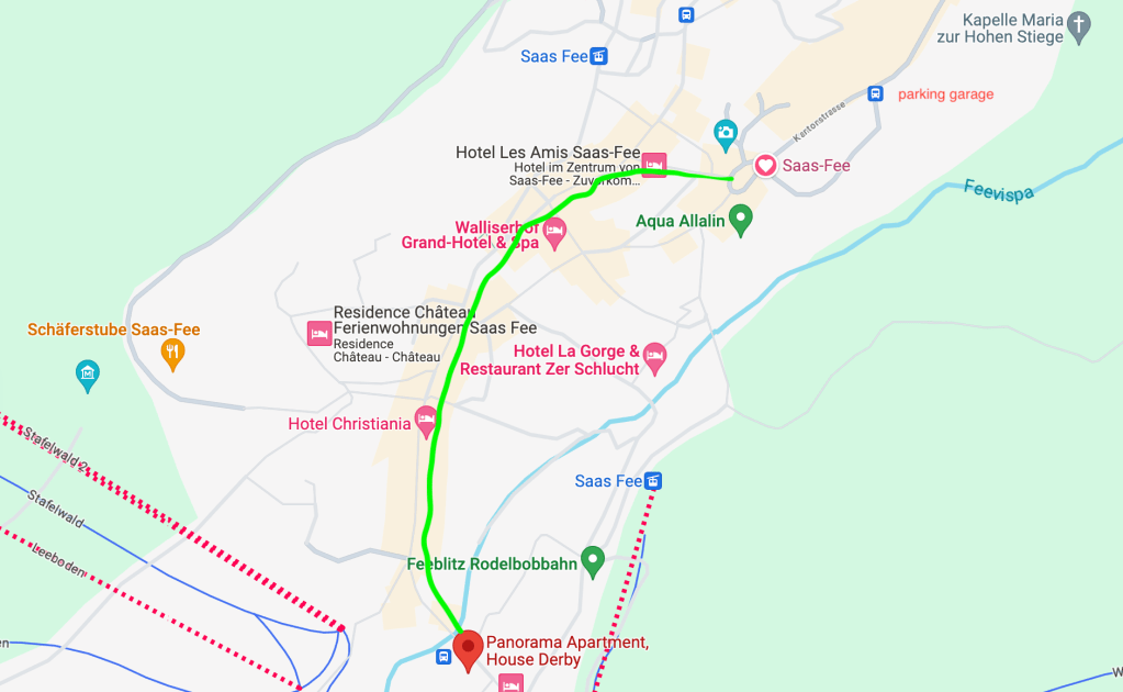 The building on the left is the TOURIST OFFICE, before the tourist office turn left