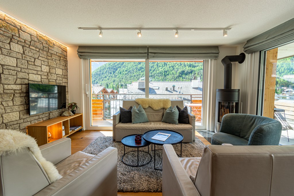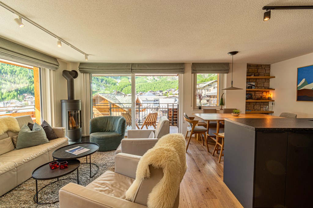 Spacious cozy living room with majestic view of the alps!