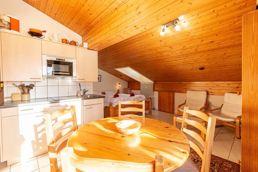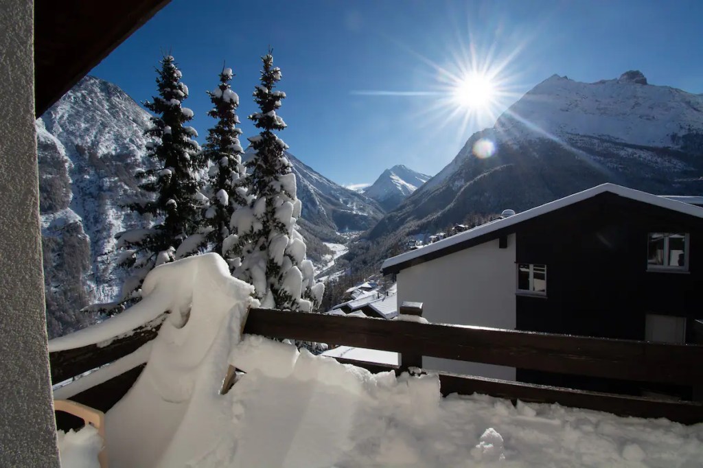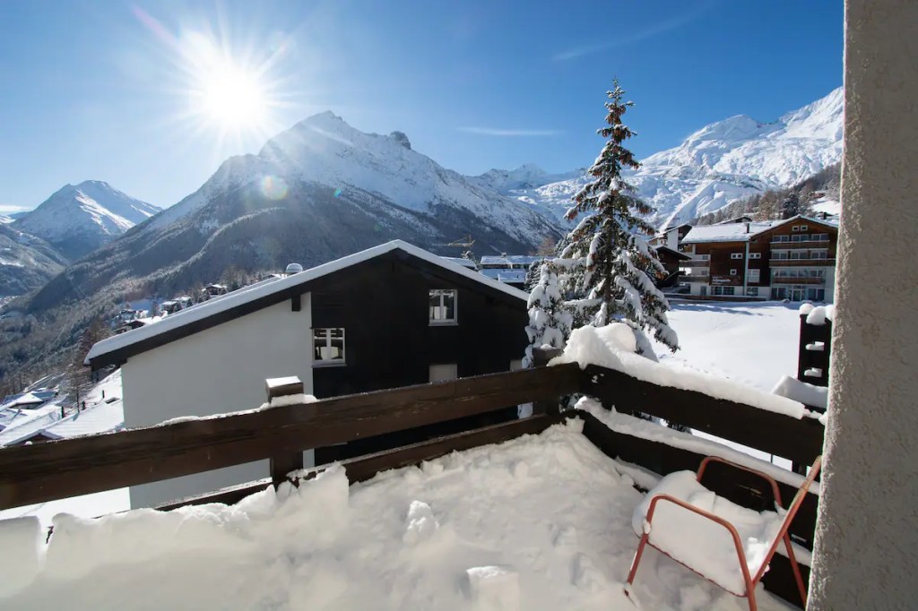 Charming studio (25m2) has a wonderful view on the summits of the 4000m peaks. Saas-Fee is well known for its snow secure skiing on with the highest point being 3500m. The village is located on 1800m.