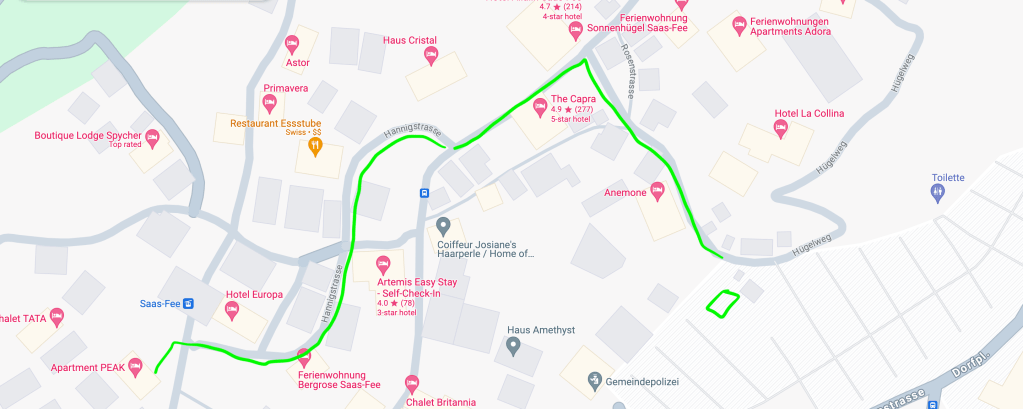 Saas-Fee is a car free village. To get to this apartment there are two ways. By Taxi or by foot. By foot it will take approximately 10minutes. As google route doesn’t work so well in Saas-Fee, please find below a walking route. It is much easier to take the Hannigstrasse, past the hotel marmotte and hotel europa as this is less steap then coming up from the city center street.