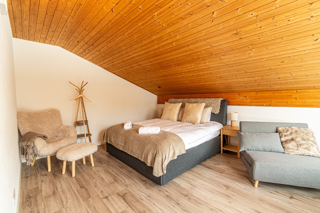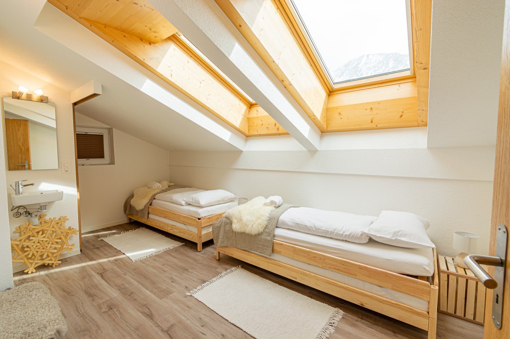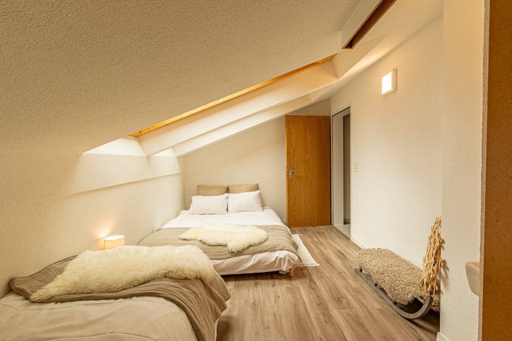 Bedroom 2: is featuring 4 single beds. Usually stacked on eachother, but can be seperated as 3 single beds or put together as a second double bed. Perfect when you’re travelling with family. This bedroom also has a private toilet room.