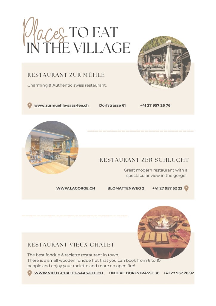 Here’s a list of our favourite restaurants in Saas-Fee. We highly advice you to reserve your restaurant spot far in advance if you’re visiting during the high season weeks.