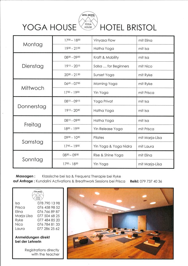 If you like to keep moving during your stay in Saas-Fee and work on your flexibility, please find here the schedule of the Yoga House in Saas-Fee. You can register with each teacher directly and come for single lessons only.